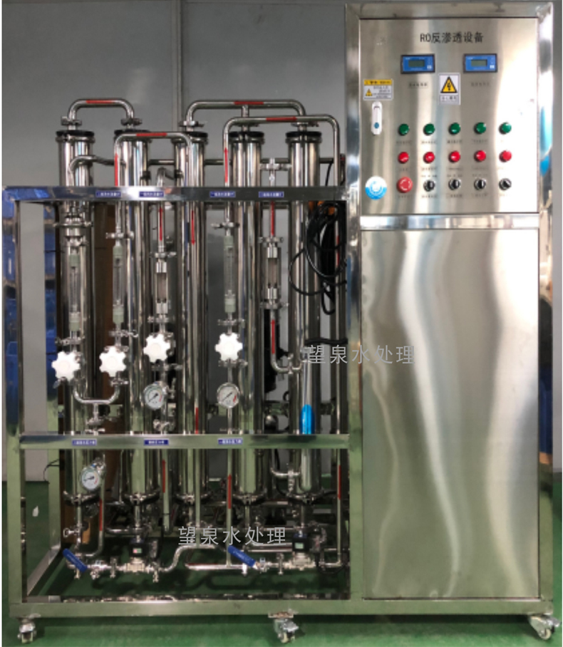 1)前三級罐體,第一級石英砂過濾器,第二級活性炭過濾器,第三級軟化過濾器,第四級精密過濾器,第五級是RO膜,EDI