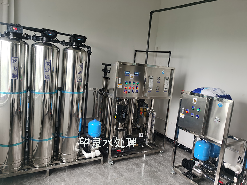 1)前三級罐體,第一級石英砂過濾器,第二級活性炭過濾器,第三級軟化過濾器,第四級精密過濾器,第五級是RO膜
