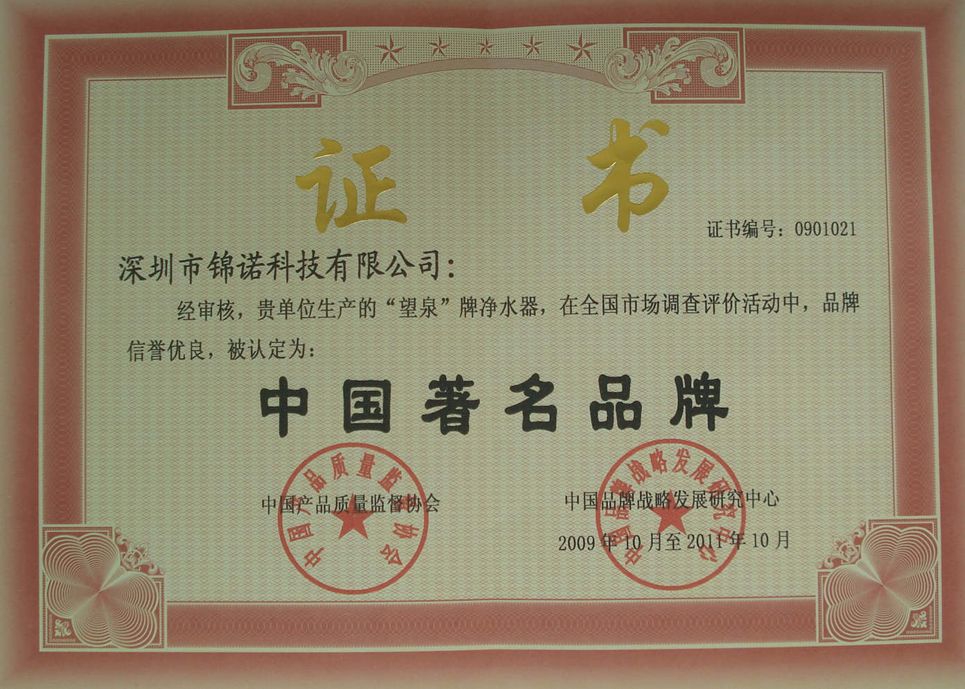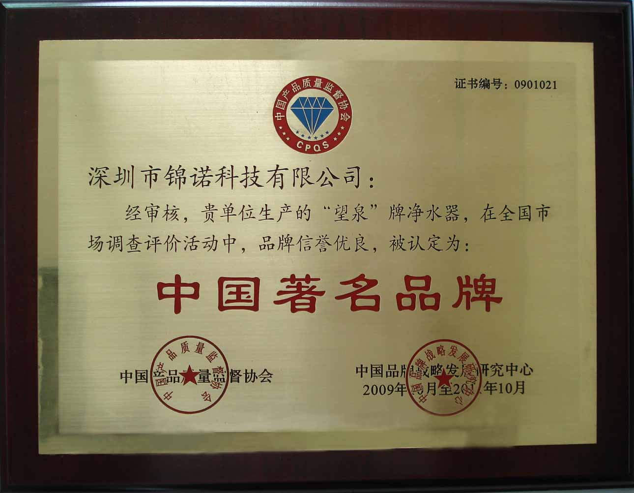 著名品牌證書