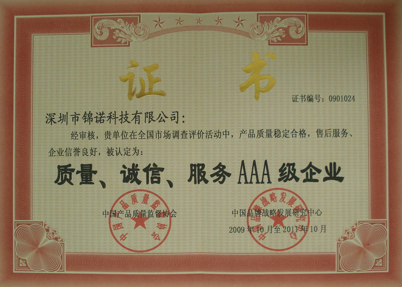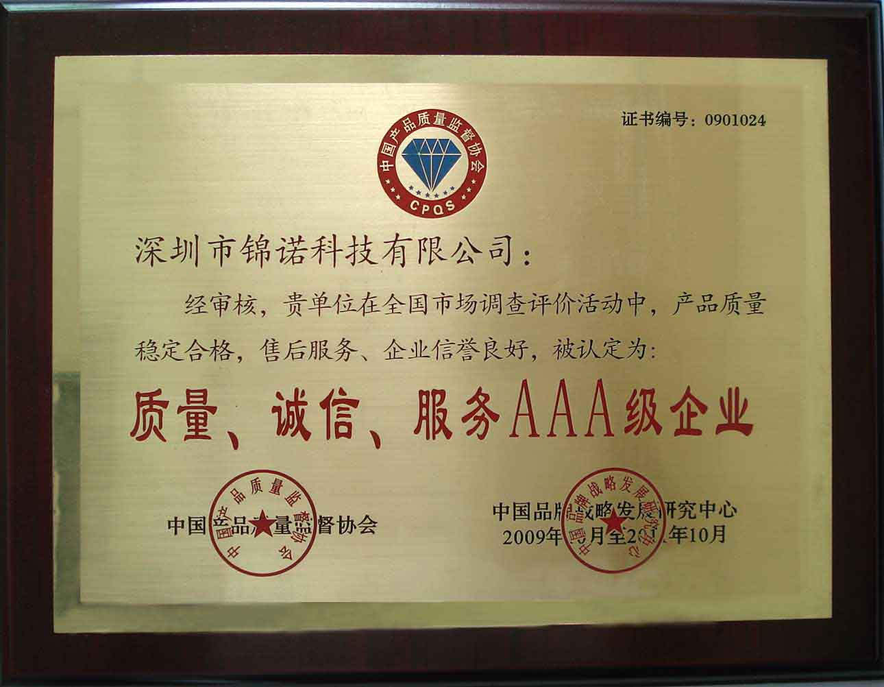 質量品牌證書