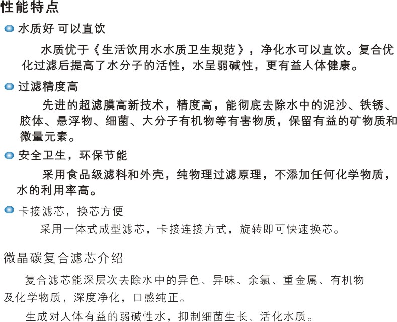 使用壽命: ≥3年(當原水為市政自來水時,根據水質差異,濾芯使用壽命不同,但一般不低于3年)