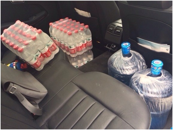 網友車內所搶的礦泉水。
